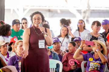 A secretária de Política Agrícola da Contag, Vânia Marques Pinto, reforçou a alegria de encontrar toda a diversidade que a Marcha das Margaridas proporciona. Isso mostra em qual território estamos pisando: um território de vida. “Porque, para nós, mulheres do campo, o campo é lugar de vida. E é nessa perspectiva que discutimos a agroecologia, as cadernetas, esse instrumento importante para a gente perceber a sociobiodiversidade, a dinâmica econômica dos quintais produtivos, e esse projeto que temos em parceria com a Fiocruz”, ressaltou.