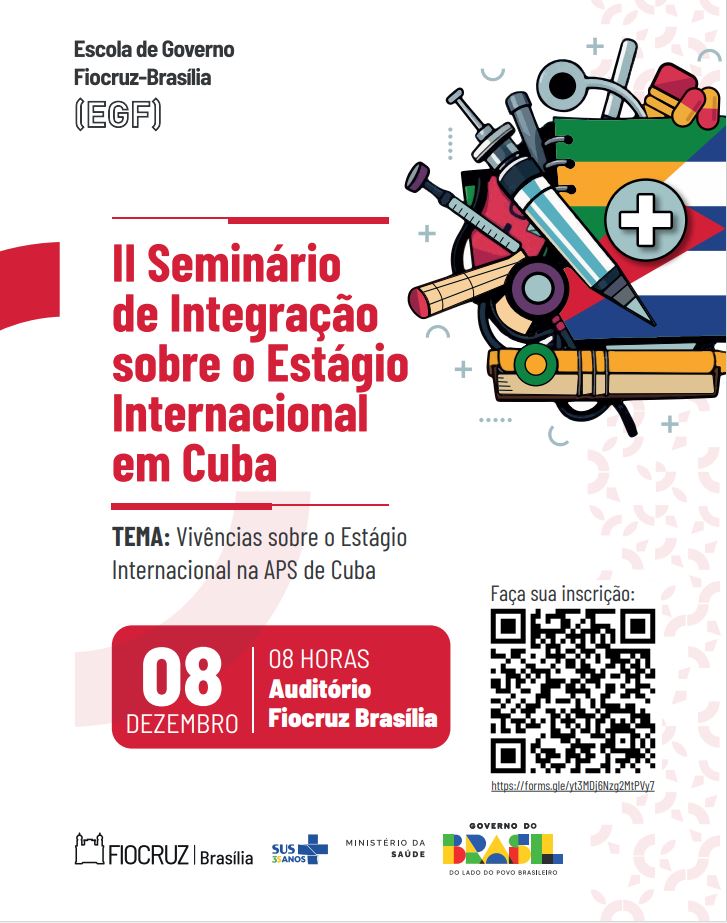 A Escola de Governo Fiocruz-Brasília promove, no dia 8 de dezembro, o 2º Seminário de Integração sobre o Estágio Internacional em Cuba, um encontro que reunirá residentes, docentes e demais integrantes da comunidade acadêmica para compartilhar experiências, aprendizados e reflexões sobre a vivência formativa no país caribenho. O evento acontece a partir das 8h, no […]