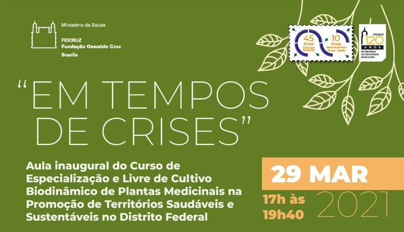 Na próxima segunda-feira, 29 de março, a partir das 17h, será realizada a aula inaugural do Curso de Especialização e Livre em Cultivo Biodinâmico de Plantas Medicinais na Promoção de Territórios Saudáveis e Sustentáveis no Distrito Federal. Com o tema “Em tempos de crises”, a atividade será online, com transmissão ao vivo pelo canal da […]