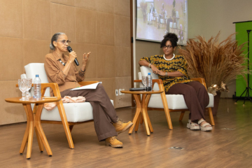 Ao lado da ministra, Marcele Oliveira, ativista climática e campeã da juventude para a COP30. Duas mulheres pretas, de gerações diferentes e protagonistas de seu tempo. A mesa trouxe a experiência da ministra Marina Silva, à frente da pasta por duas gestões, e o ativismo jovem de Marcele. A mensagem é clara: as mudanças climáticas atravessam gerações e é um problema que exige o comprometimento de todos.