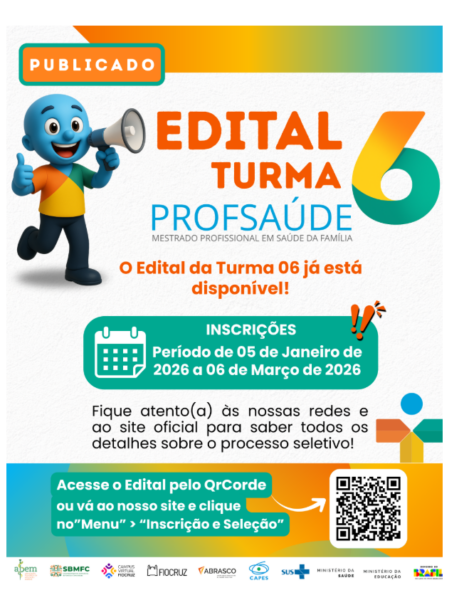 Está no ar o edital de seleção para o mestrado profissional em Saúde da Família (Profsaúde) / Turma 6. O curso é gratuito, oferecido na modalidade híbrida, com 600 vagas distribuídas em 45 Instituições de Ensino Superior (IES) de todas as regiões do país, com carga horária de 975 horas e duração prevista entre 18 e 24 meses. As inscrições estarão abertas de 5 de janeiro a 6 de março de 2026.