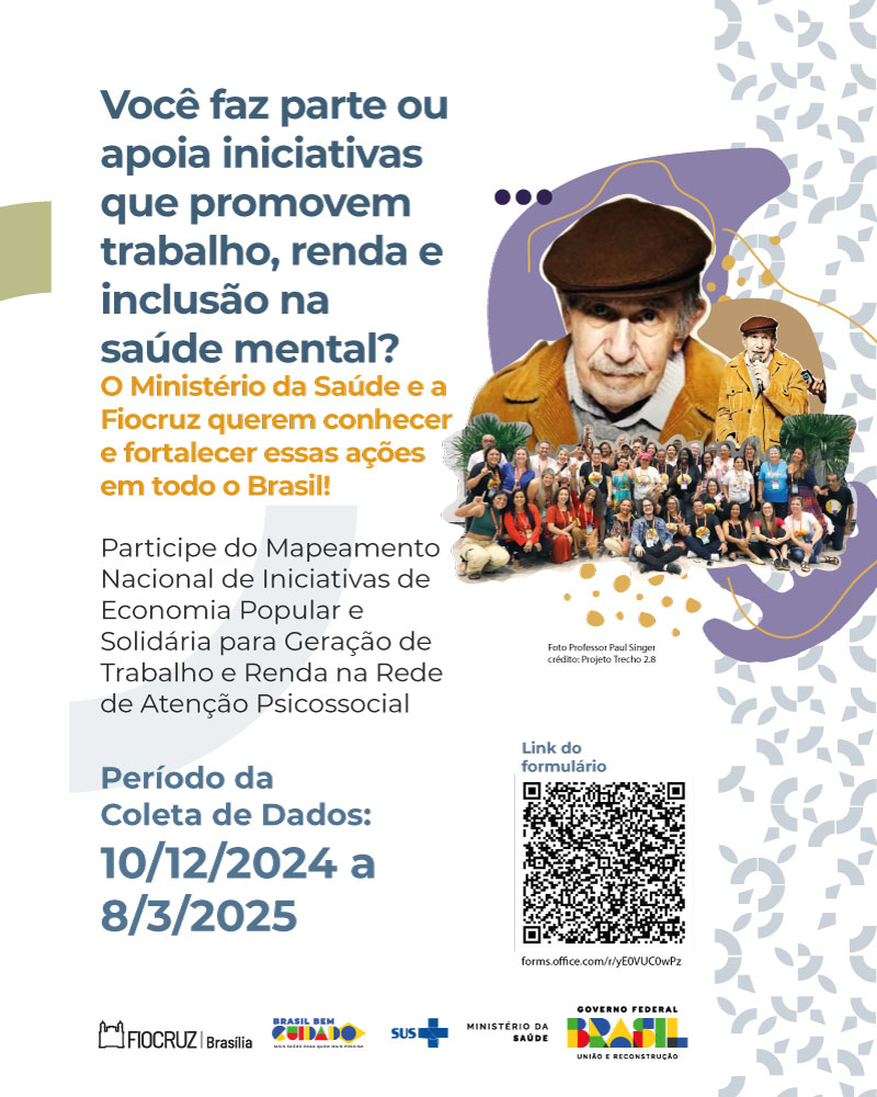 O Departamento de Saúde Mental, Álcool e Outras Drogas (Desmad) do Ministério da Saúde, em parceria com a Fiocruz Brasília – por meio do Núcleo de Saúde Mental, Álcool e outras Drogas (Nusmad), está atualizando os Bancos de Dados para identificar e potencializar iniciativas de geração de renda associadas à saúde mental, em articulação com o Eixo VII da RAPS – Estratégias de Reabilitação Psicossocial. O objetivo é retomar e fortalecer projetos que fomentam essas experiências transformadoras.