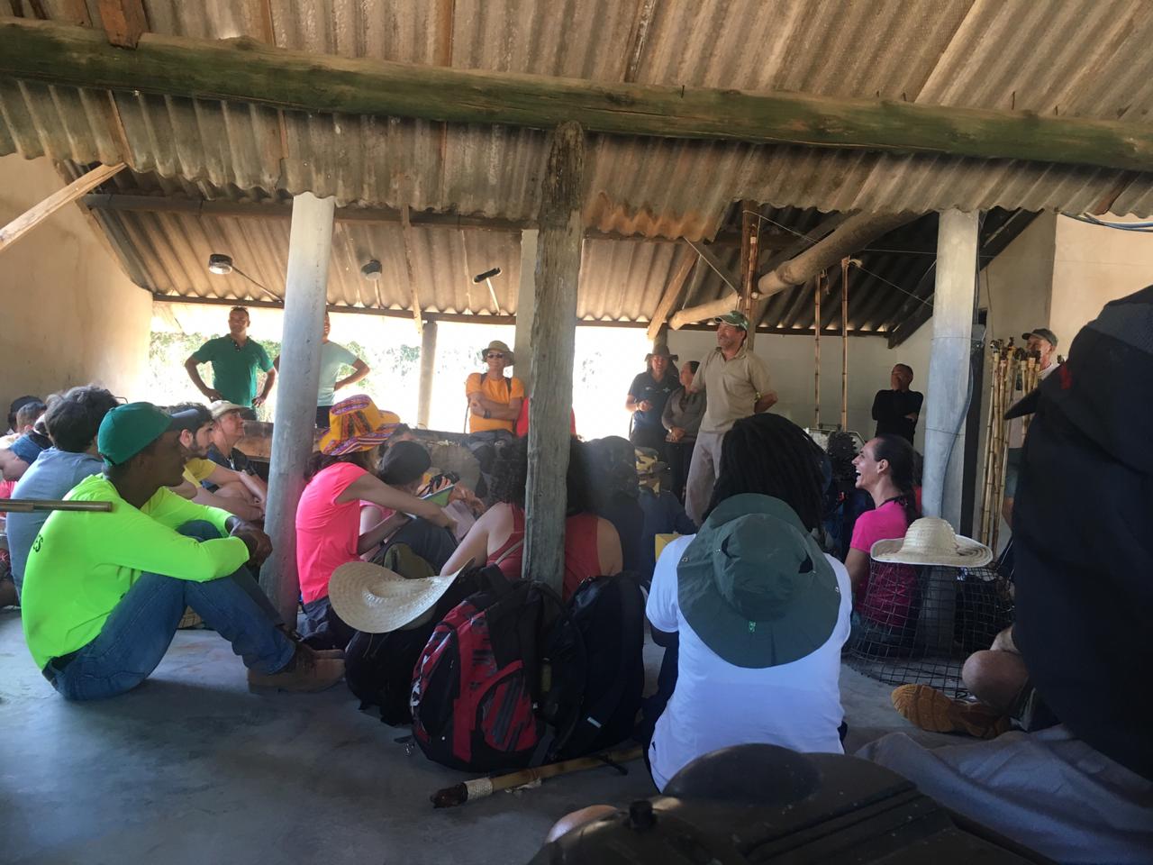 Nas conversas com os anfitriões, os selecionados do projeto ouviam histórias sobre o processo de fabriqueta de farinha de mandioca e rapadura pelas comunidades quilombolas e de luta pela terra, como no caso de dona Geralda, que foi perseguida na época da ditadura e ameaçada de morte porque os vizinhos queriam suas terras.